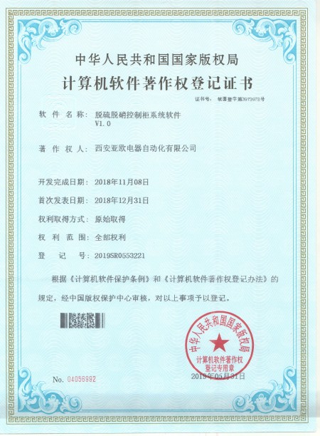 - 關(guān)于我們 - 資質(zhì)榮譽(yù) - 脫硫脫硝控制柜系統(tǒng)軟件