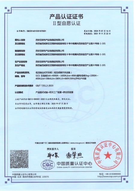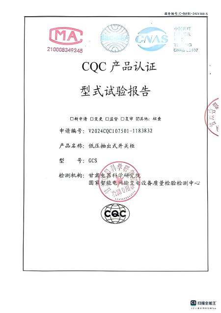 - 關(guān)于我們 - 資質(zhì)榮譽 - 低壓抽出式開關(guān)柜(GCS)資質(zhì)